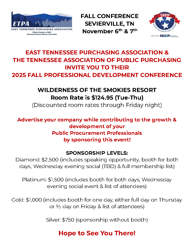 Sponsorships - TAPP & ETPA 2025 Fall Professional Development Conference